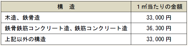 (*3) 標準的な費用とは、国土交通大臣が定めるもので、次の金額に床面積を乗じた金額をいう。