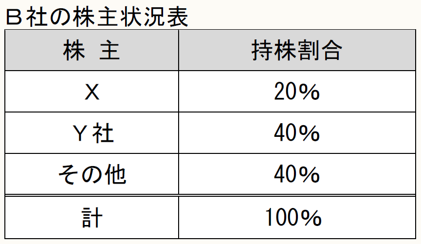 Xは、従来から居住の用に供してきた家屋とその土地を、B社に売却しました。B社の株主は、次の表のとおりであり、XはY社の株式の51%を所有しています。