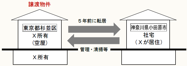 会社員Xは、東京都杉並区にある家屋に居住し、新宿区の本社に通勤していましたが、5年前に神奈川県小田原市の営業所へ転勤となったことから、同市の社宅に家族と共に転居し、そこから営業所に通勤していました。