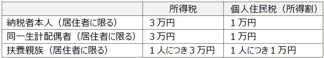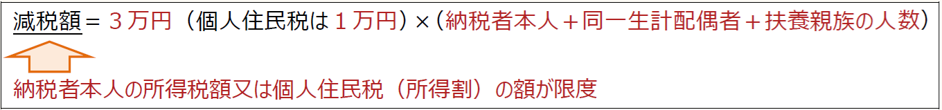 年調減税額(注)3万円 ×(納税者本人+同一生計配偶者+扶養親族の人数)