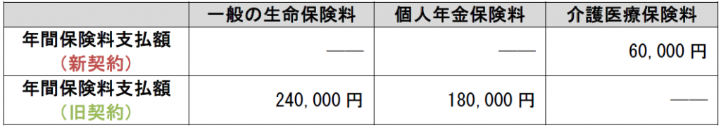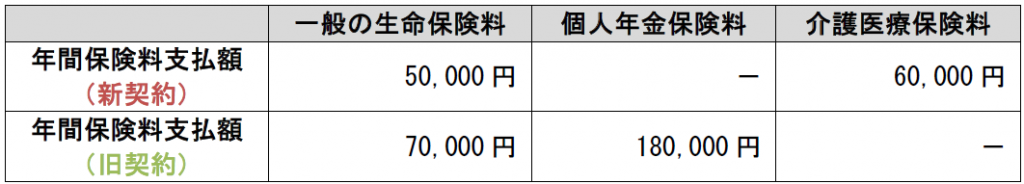 〈ケース3〉一般の生命保険と個人年金保険が旧契約、介護医療保険が新契約の場合