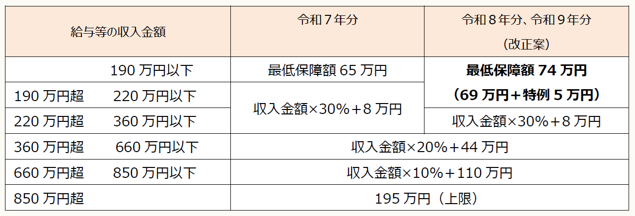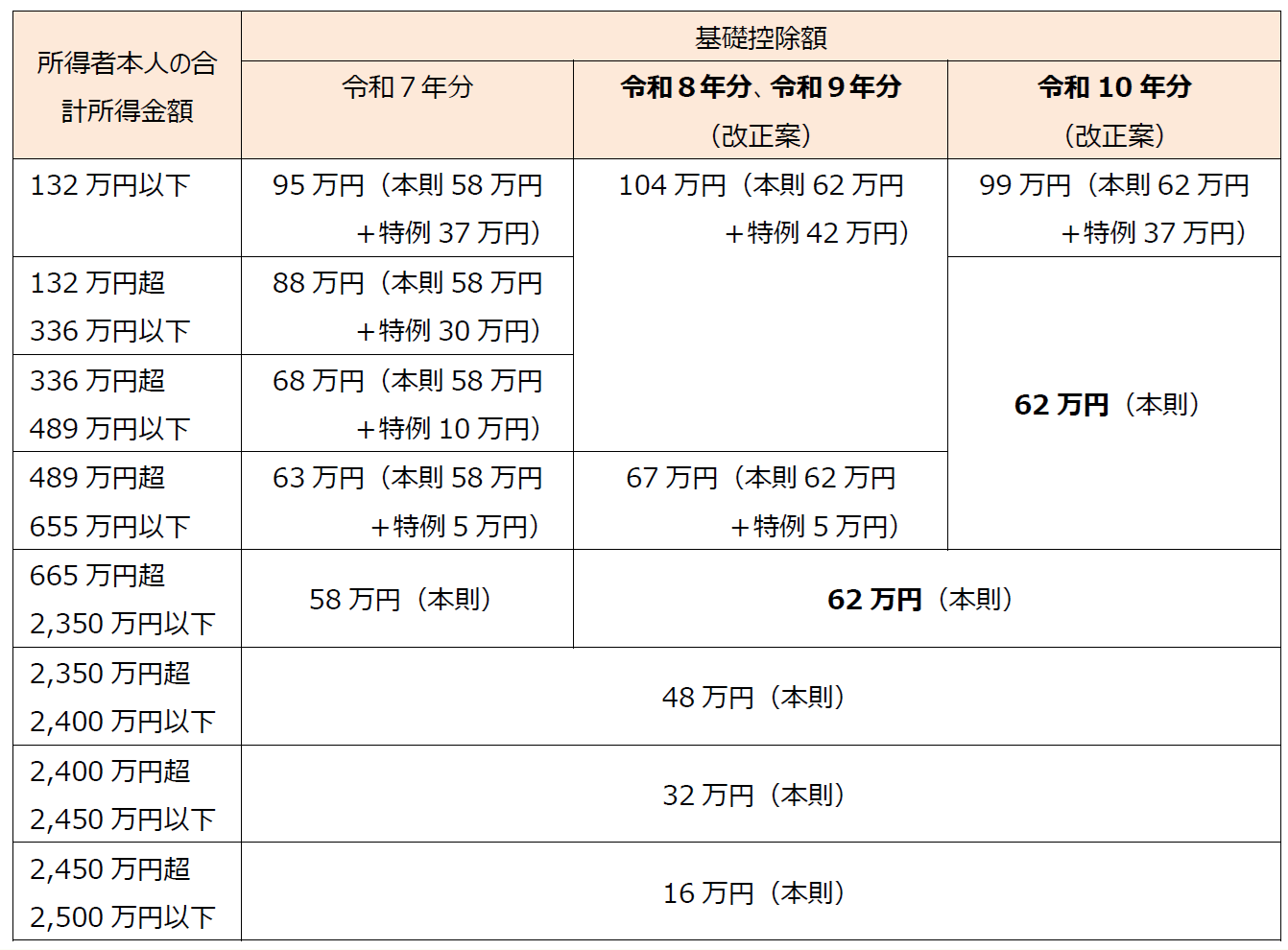 なお、控除額の引上げは、令和8年分以後の所得税に適用されるが、給与等及び公的年金等の源泉徴収については、令和9年1月1日以後に支払う給与等及び公的年金等について適用する。