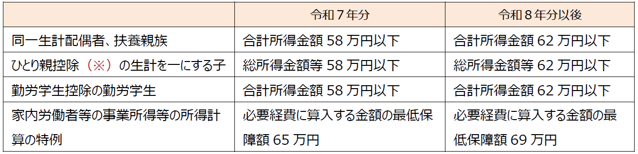 同一生計配偶者等の所得要件について、次のとおり引き上げることが示された。