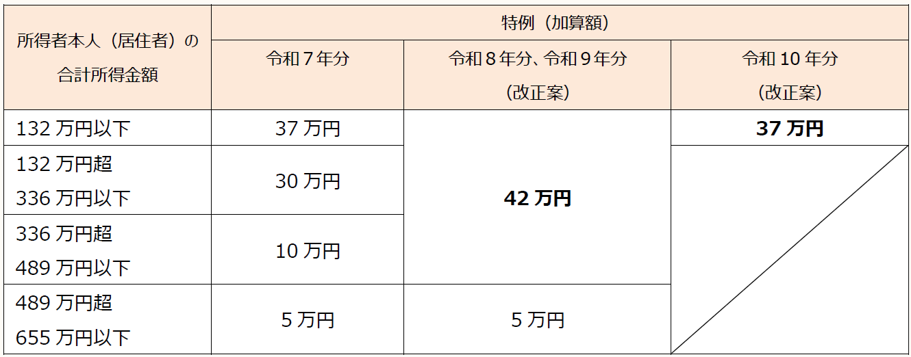 令和7年分以後の所得税では、居住者について基礎控除に一定の金額が加算される特例が設けられている(措法41の16の2➀)。大綱では、この特例について以下の改正案が示された。