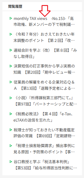 横枠の閲覧履歴に自動で記録されます(直近の10記事を表示)。