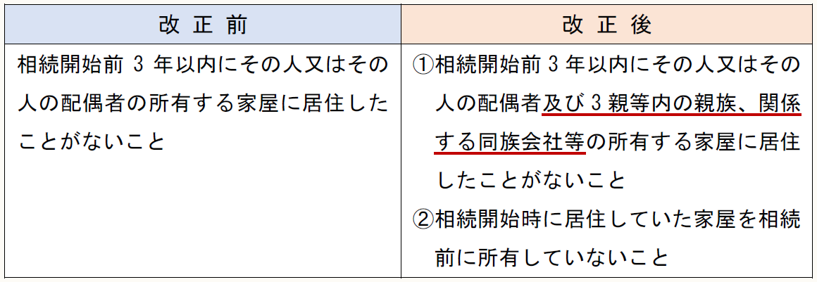 そこで、今回の改正前においては、①持ち家に居住していない者に対する特定居住用宅地等の特例及び②貸付事業用宅地等の特例に関して、居住又は事業の継続への配慮という政策目的に沿ったものとなっていない使われ方があるという指摘を踏まえ、改正に至ることとなった。