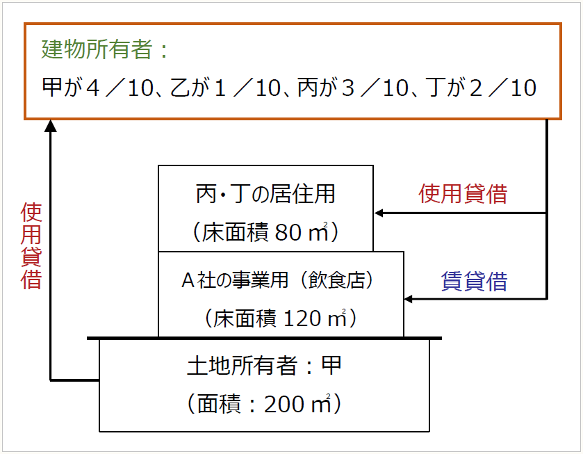 甲は建物所有者から地代を収受していません。建物所有者は、A社から周辺相場程度の家賃を収受していますが、丙・丁の居住部分からは賃料は収受していません。