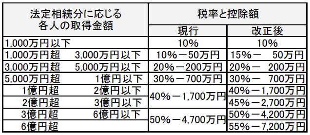 この図表を見ると、贈与税の課税価額が1,000万円までなら現行の税率と変わらないが、1,000万円超から1,500万円までが、現行の50%から45%に引き下げられていますね。そして、1,500万円から3,000万円までは現行どおりの50%。3,000万円超からは55%と増税になっていますね。