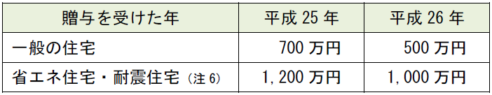 をして、同日までに住宅の用に供した場合に、次の金額までは、贈与税の非課税になります。