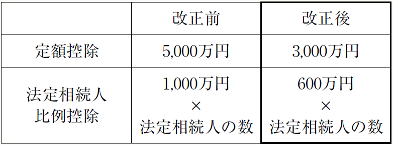 また、相続税の税率構造の見直しについては、(基礎控除後の相続財産を法定相続分で按分した)各相続人の取得金額2億円までは改正が行われていないため、相対的に小規模な財産の相続税案件について影響は少ないものと考えられる。