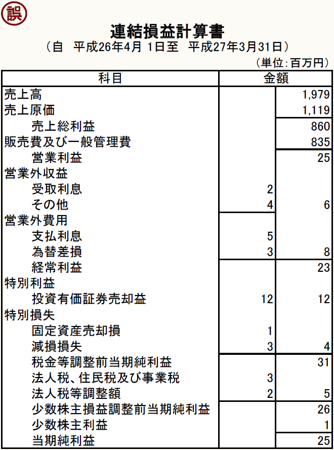 連結損益計算書のフォームで、罫線を引き忘れているところが1ヶ所ある。