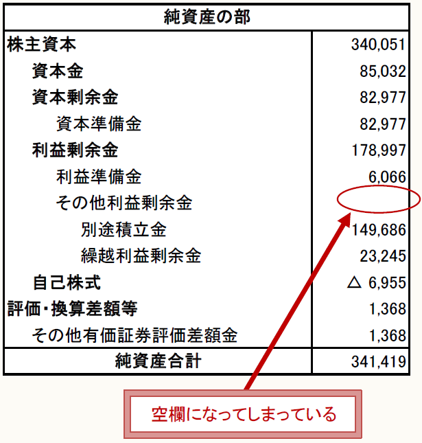 「個別B/Sの「その他利益剰余金」が空欄になっているミス」