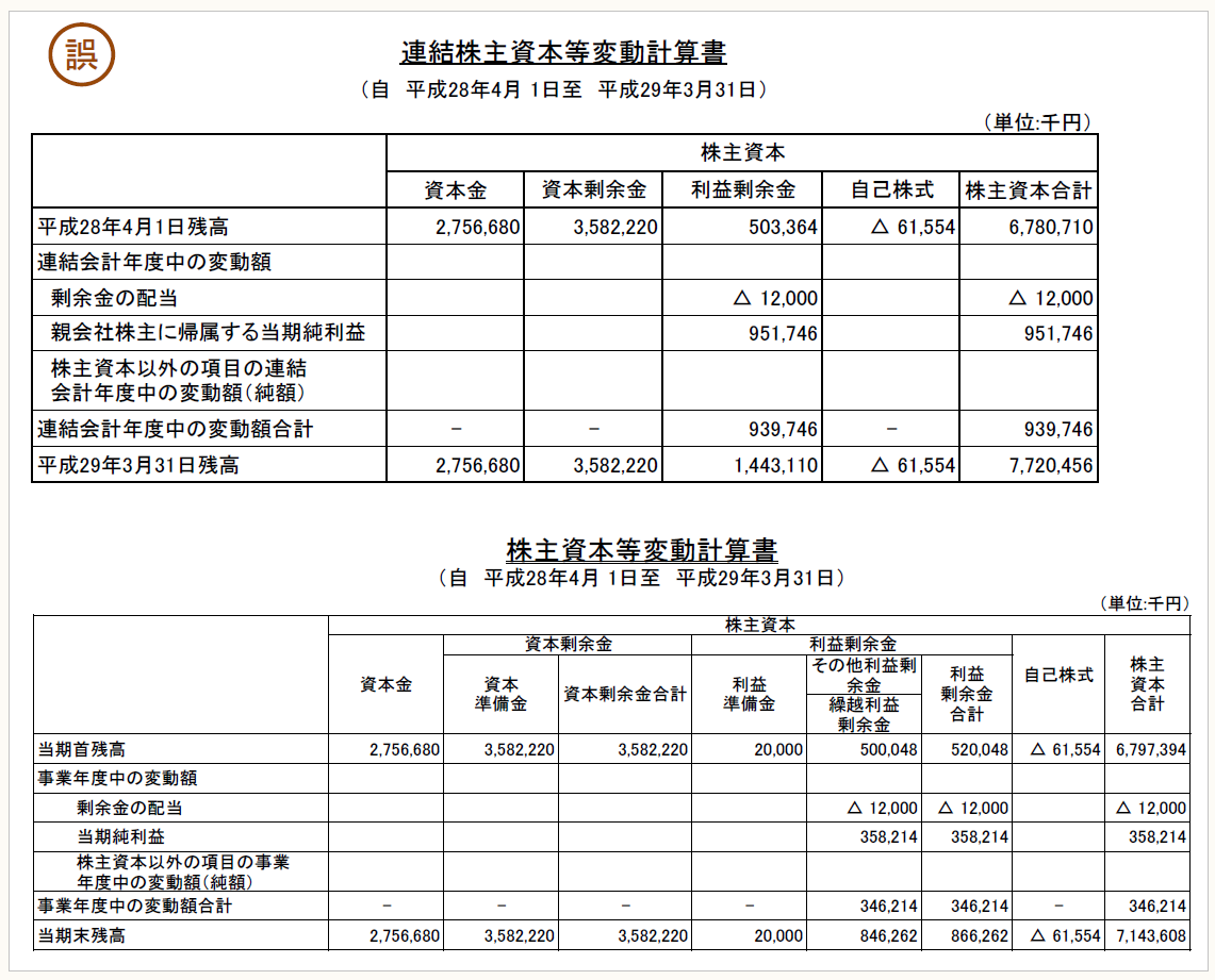 連結株主資本等変動計算書と株主資本等変動計算書で、不統一な表現がある。