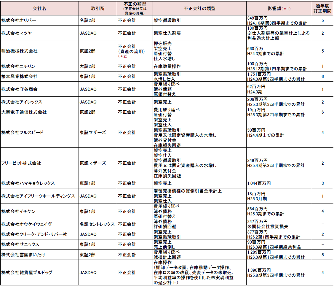(*1) 影響額は、調査報告書などに記載された財務諸表の訂正額のうち純資産への影響額などを記載(会計監査手続が完了前の金額あり)。