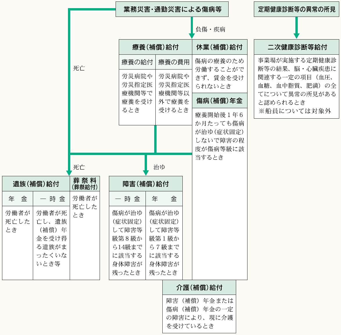 労災保険給付の概要は以下の通りである。