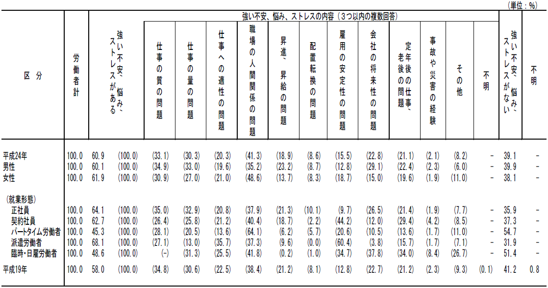 図表2 仕事や職業生活に関する強い不安、悩み、ストレスの有無及び内容別労働者割合