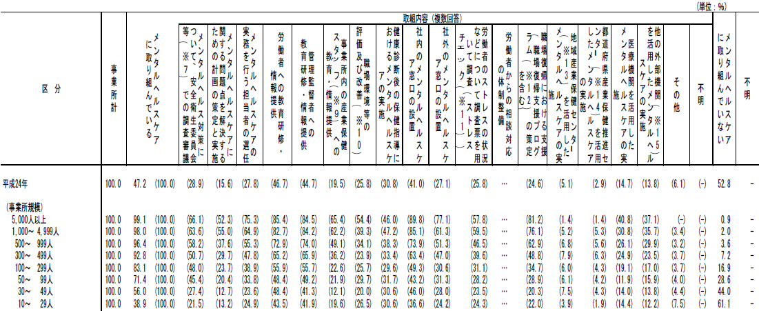 図表3 メンタルヘルスケアの取組の有無及び取組内容別事業所割合