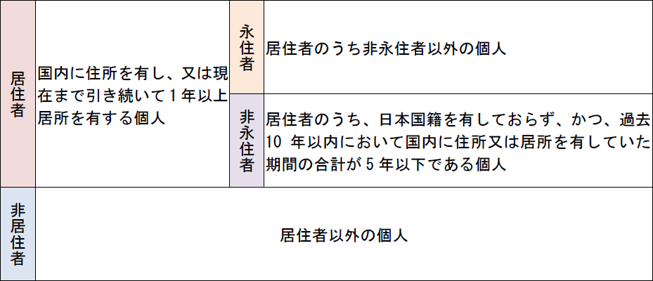 日本の国内法において、個人の納税義務者の居住形態は、居住者、非居住者に分かれ、また、その居住形態ごとに課税所得の範囲が定められている。