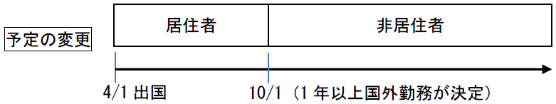 1年以上国外勤務になることが明らかになった日から居住形態が変更となる。
