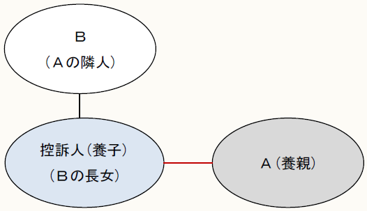 つまり、縁組当時及びその後の事情等により、専ら、身寄りのないAの財産を控訴人に相続させるための便法として養子縁組が利用されたものと事実認定した。
