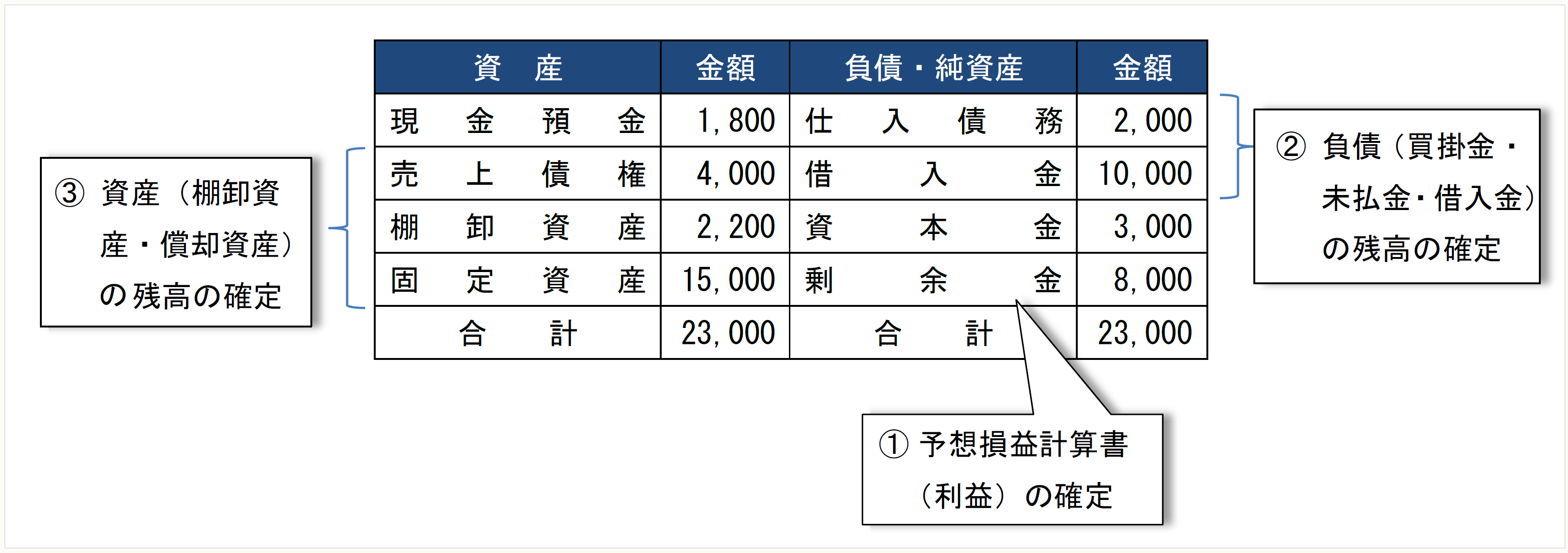 まずは、予想損益計算書の作成を通じて、最終利益(純資産の部の残高)を確定する(【第2回】参照)。予想貸借対照表の各勘定科目の残高は、予想損益計算書(経営活動)の結果である。