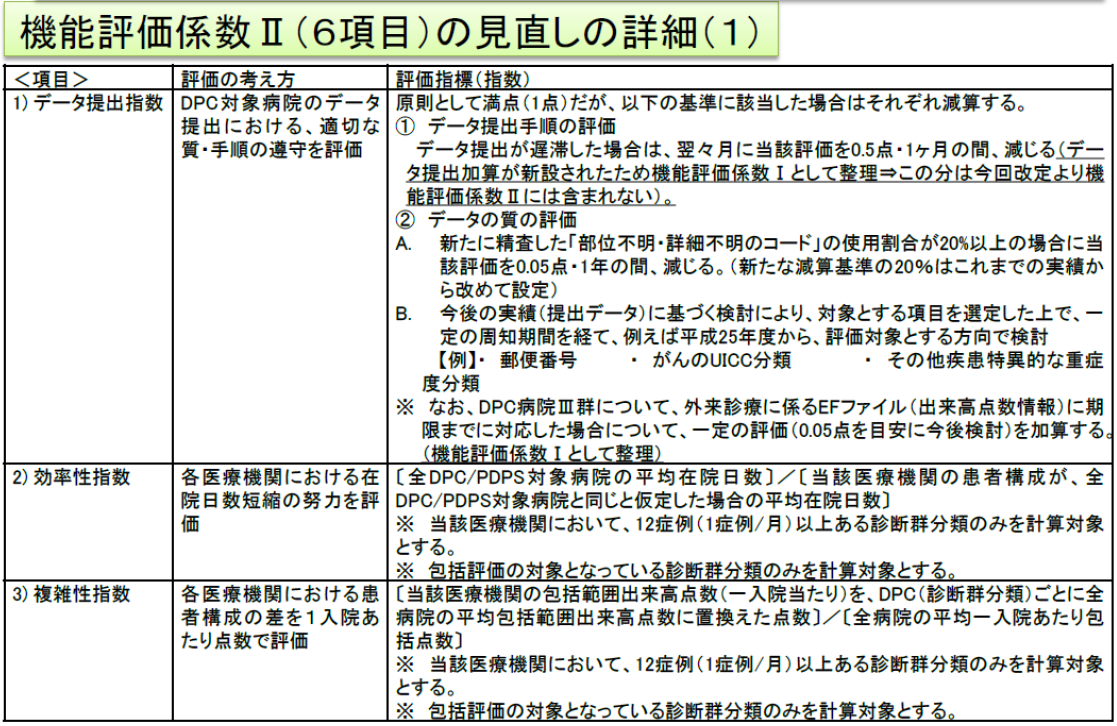 「DPC/PDPSにおける機能評価係数Ⅱ」