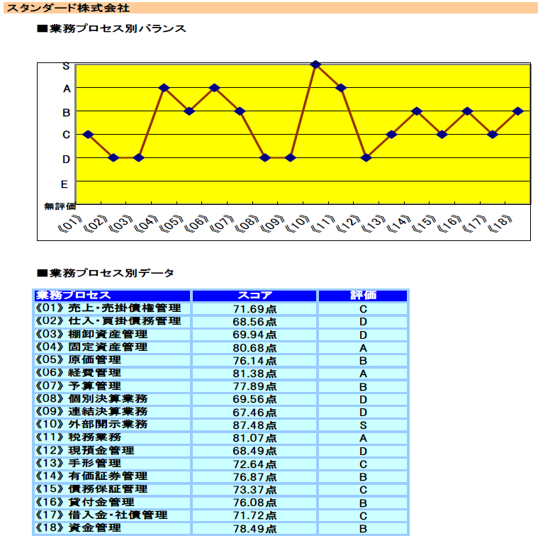 さらに、図表2のように、経理財務の個別の業務プロセスのサービスレベルの優劣が一目で分かるような診断サービスを提供できる。このように、問題点を適切に把握できれば、業務改善のための解決策も適切に策定できるだろう。