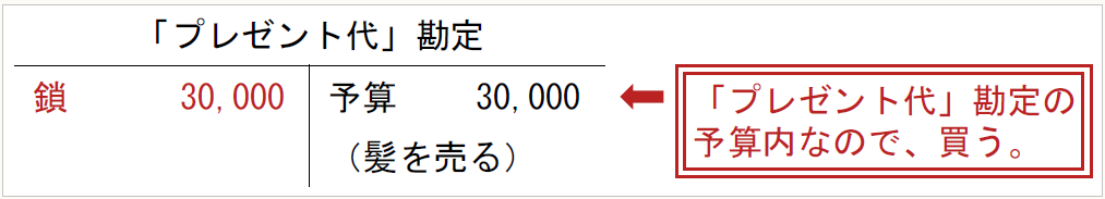 女性は、高価なクシを買うと、日用品に使ってもよいと考える予算をオーバーしてしまうので、自分ではクシを買いません。しかし、相手へのプレゼントに使ってもよいと考える予算は大きいので、高価な鎖を買うという意思決定をするわけです。