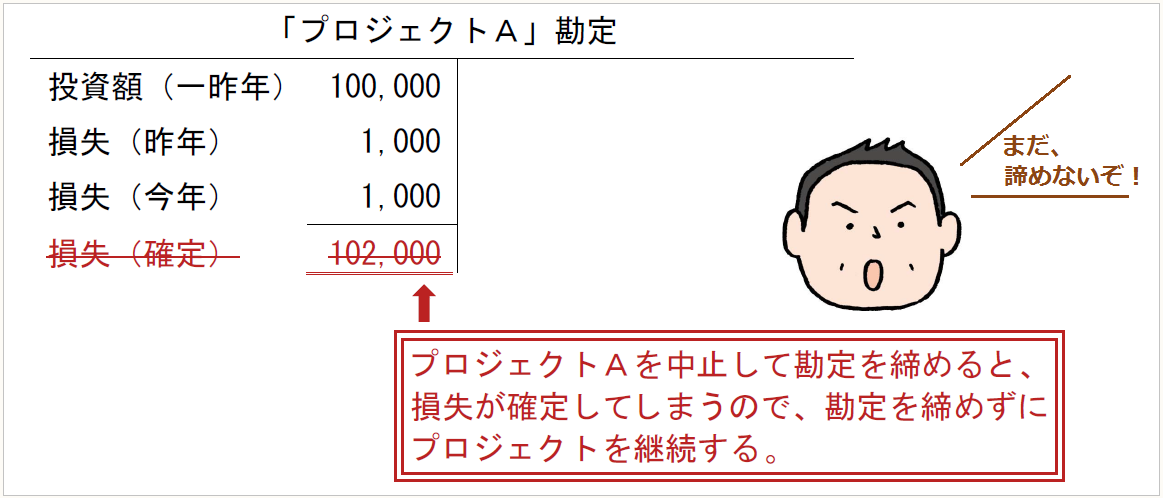 あの~、お言葉ですが・・・。一昨年に投資した金額は、プロジェクトを継続しても中止しても、今さら戻ってこないような気がするんですけど・・・。