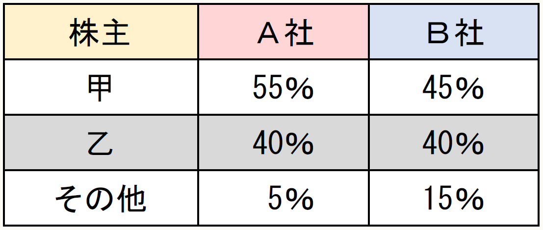 【A社及びB社の株主と議決権の保有割合】