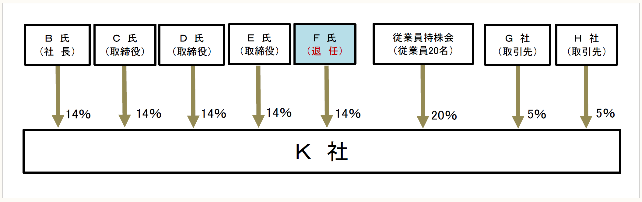 私は、化学製品卸売業を営むK社で総務部長を務めています。当社は、創業オーナーであったA氏に親族内の後継者が存在しなかったことから、創業直後から当社で働いてきた非同族の取締役B(社長)を中心とする役員5名による非同族承継を行いました。