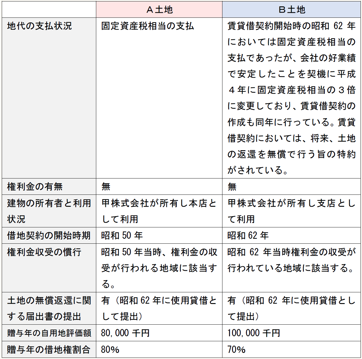 なお、甲株式会社はA土地及びB土地について借地権の認定課税を受けたことはありません。