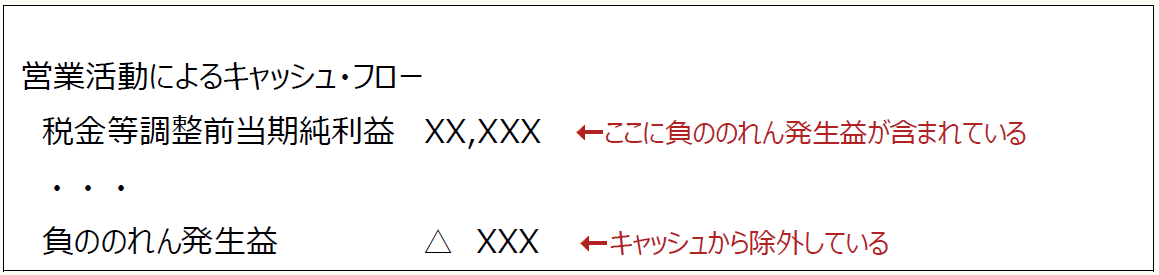 非資金項目である「負ののれん発生益」は、利益には違いありませんがキャッシュの増加を伴いません。連結キャッシュ・フロー計算書上はこのことを意識して処理します。