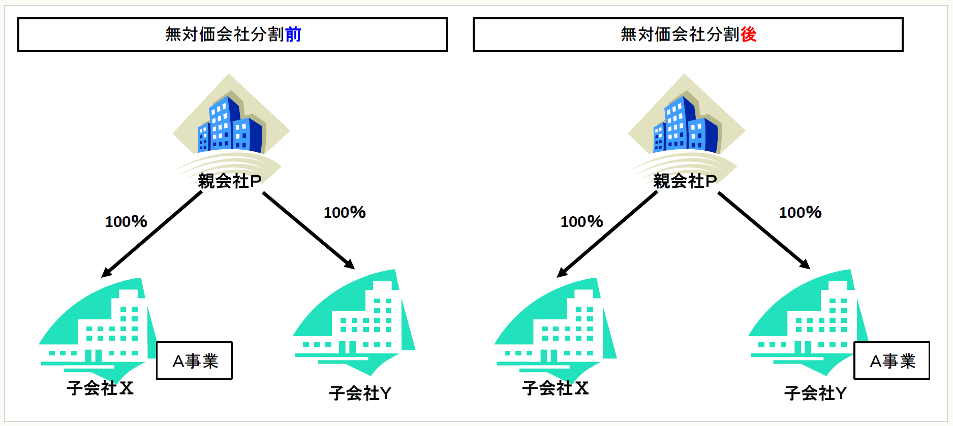 今回は、100%子会社間の無対価会社分割を解説する。企業グループとして、経営効率化のために会社分割により子会社間で事業の移転を行うことがある。その際に、対価を交付すると手続の手間が増えるため、会社分割の対価を交付しないで会社分割を行うことがある。このことを「無対価会社分割」という。