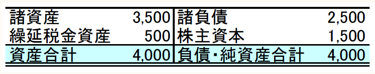 X社のA事業の分割期日前日の貸借対照表は以下のとおりである。
