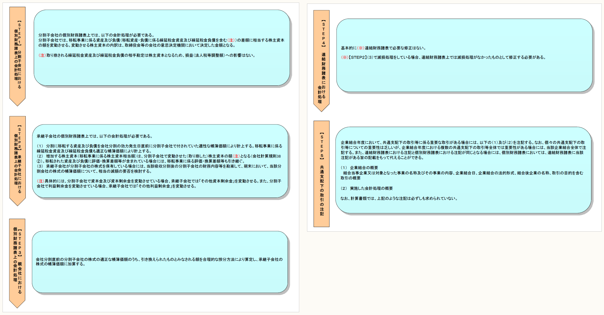 なお、個々の共通支配下の取引等についての重要性は乏しいが、企業結合年度における複数の共通支配下の取引等全体では重要性がある場合には、当該企業結合全体で注記する。また、連結財務諸表における注記と個別財務諸表における注記が同じとなる場合には、個別財務諸表においては、連結財務諸表に当該注記がある旨の記載をもって代えることができる(企業会計基準第21号「企業結合に関する会計基準基準」52)。