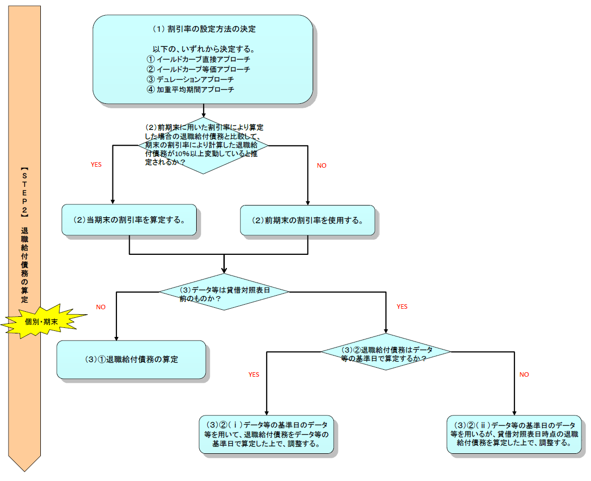 ただし、データ等を貸借対照表日より前のものを用いている場合、退職給付債務の算定において調整が必要となる。したがって、データ等を貸借対照表日現在のものを用いているか否かで検討過程が異なる。