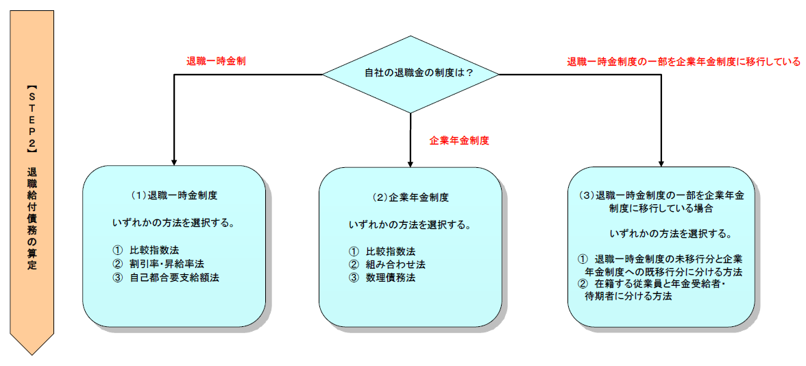 企業年金制度の場合、以下の3つの方法があるため、各社でいずれかの方法を選択する必要がある。いずれも数理債務をもとに算定する。