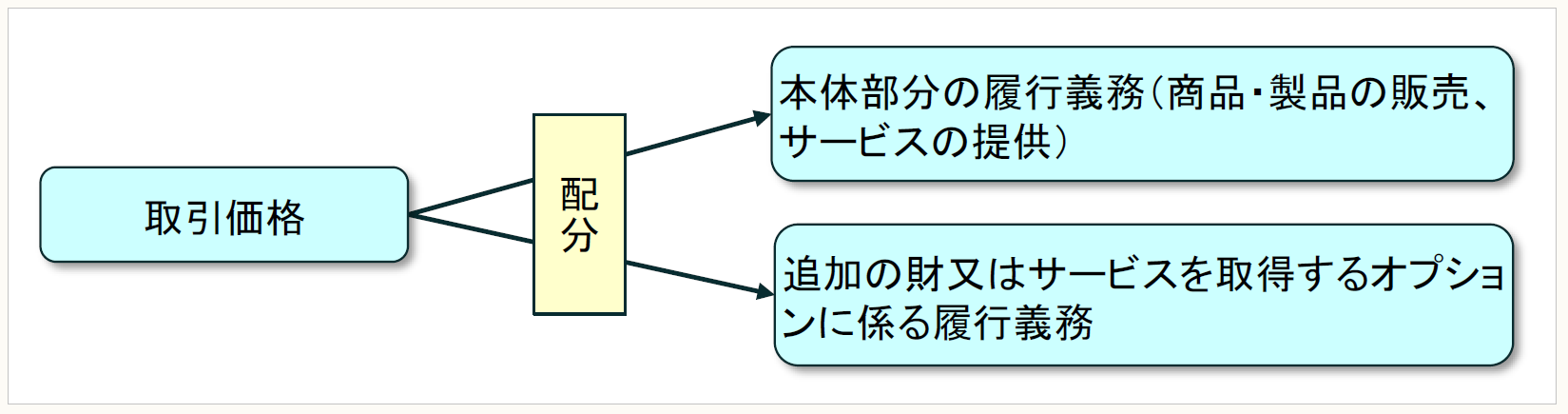 ➤顧客との契約において、既存の契約に加えて追加の財又はサービスを取得するオプションを顧客に付与する場合で、そのオプションが当該契約を締結しなければ顧客が受け取れない重要な権利を顧客に提供するときには、当該オプションは履行義務に該当する。この場合、取引価格を当該オプションに配分する必要がある。