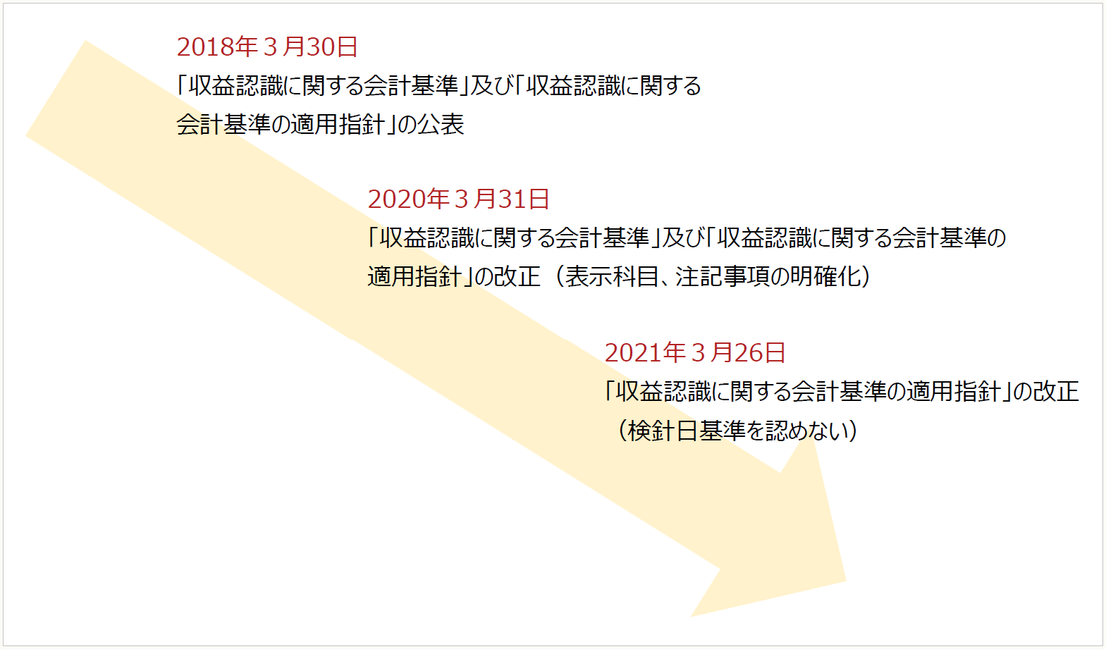 その後、収益基準及び収益指針は2020年3月31日に改正され表示科目、注記事項が明確になった。さらに、収益指針は2021年3月26日に改正され、電気事業及びガス事業において検針日基準による収益認識を認めない旨が明らかになった。