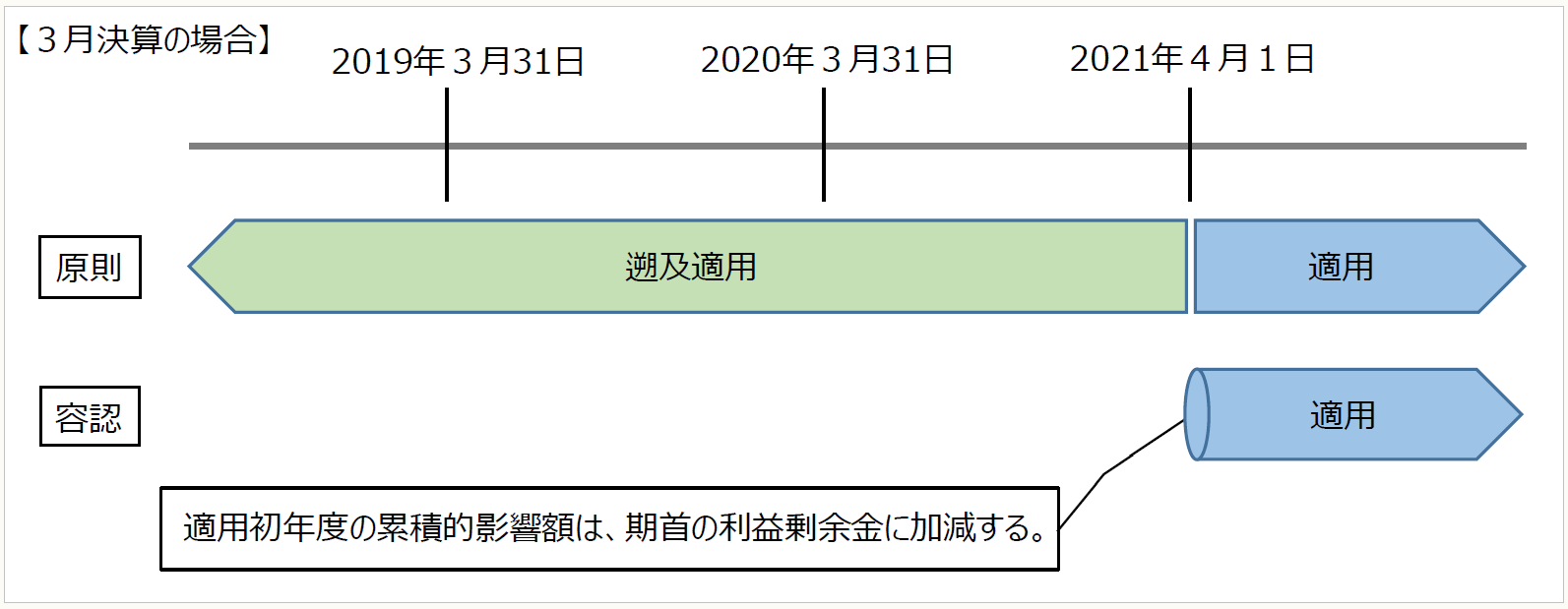 収益基準及び収益指針は、原則、2021年4月1日以後開始する事業年度の期首から適用される(収益基準81)。