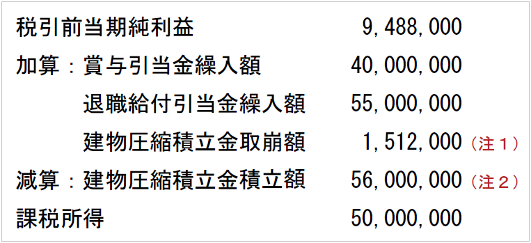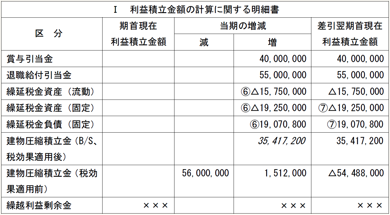 (注1) 買換建物は完成・稼動時から、当該建物の減価償却費の計上に対応させて、積立金(×1年3月期:1,512,000円)を取り崩して益金の額に算入しました。