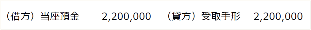 仕訳なし。受取手形割引高2,200,000円を決算書に注記。