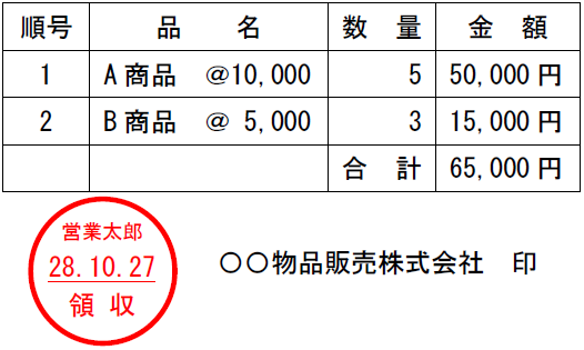 【事例2】 納品書に領収のスタンプ