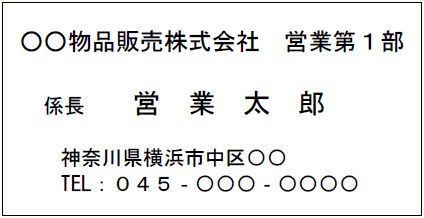 〇〇物品販売株式会社 営業太郎 印