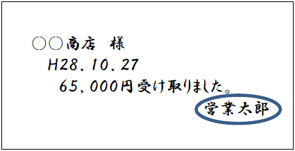 営業担当者が得意先への納品時に、品代を現金で領収する場合がありますが、その際には、営業担当者名で仮領収書を作成交付し、後日、経理課において、正式な領収書を郵送にて交付しています。