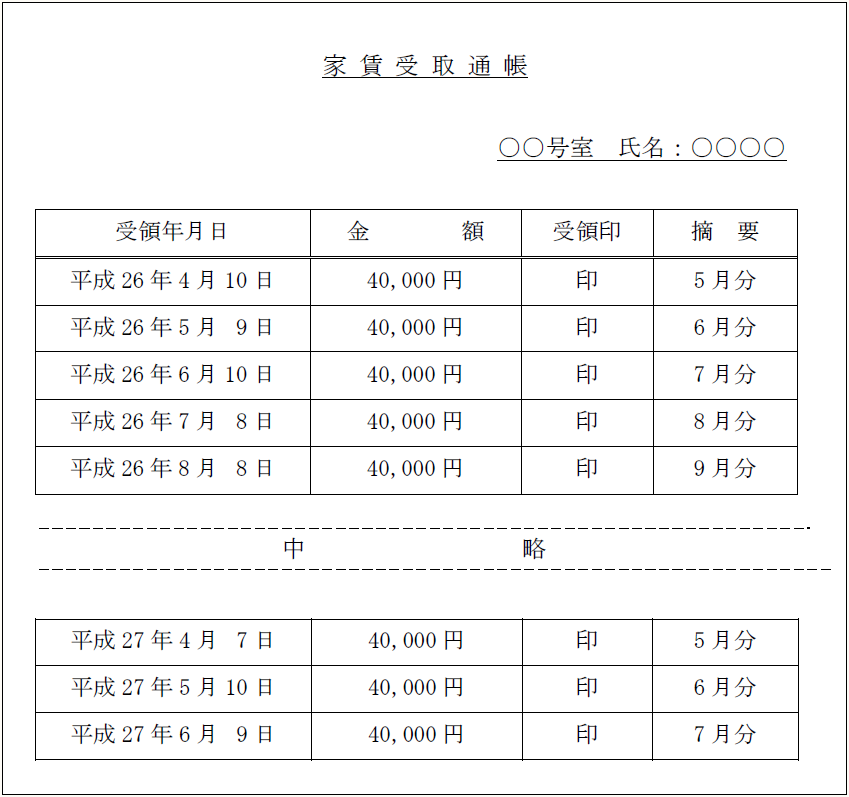 その際に家賃の受取通帳を作成して、現金受領の都度、受領印を押して借主に渡しています。