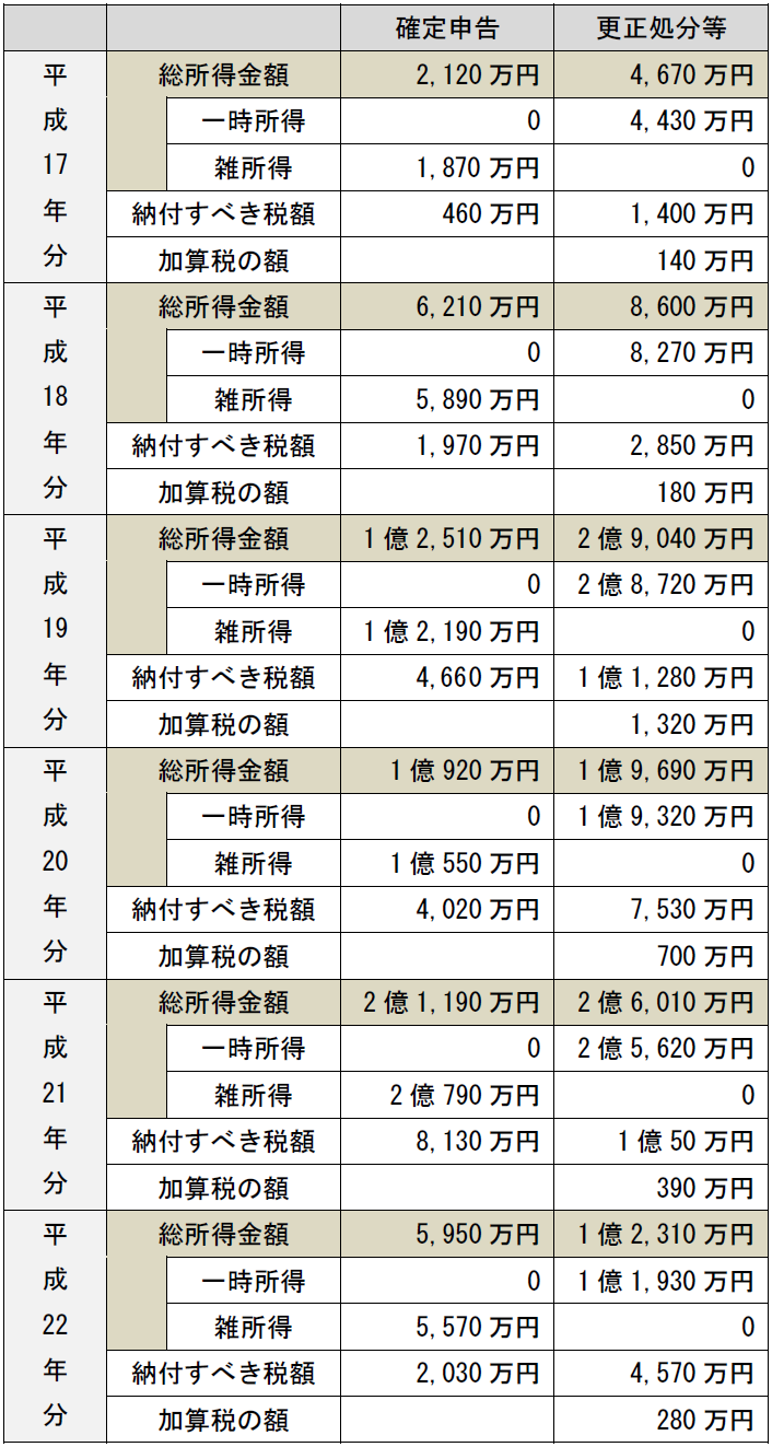 Xは確定申告において、馬券の払戻金(本件競馬所得)について、これを雑所得として申告したが、税務署長Y(原処分庁)はこれを一時所得に当たるとして更正処分及び加算税賦課決定処分等を行った。