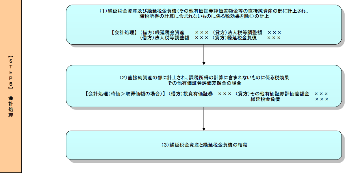 繰延税金資産及び繰延税金負債(その他有価証券評価差額金等の純資産の部に直接計上され、課税所得の計算に含まれないものに係る税効果を除く)の増減額を「法人税等調整額」を相手勘定科目として計上する(実務指針2)。