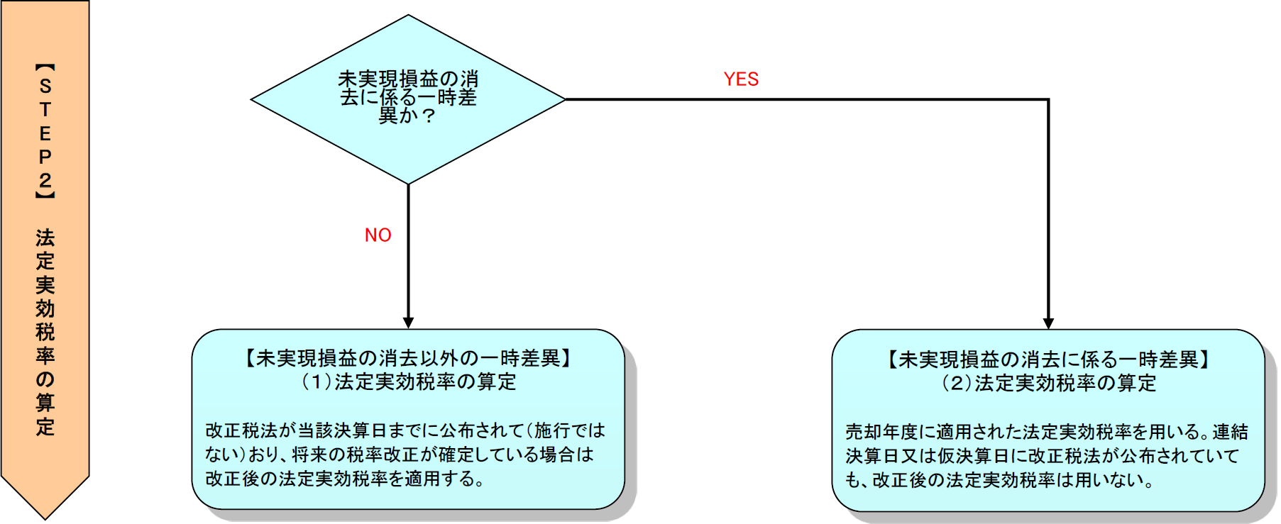 未実現損益の消去に係る一時差異とそれ以外の一時差異で用いる法定実効税率は異なる。そのため、それぞれで法定実効税率を算定する。